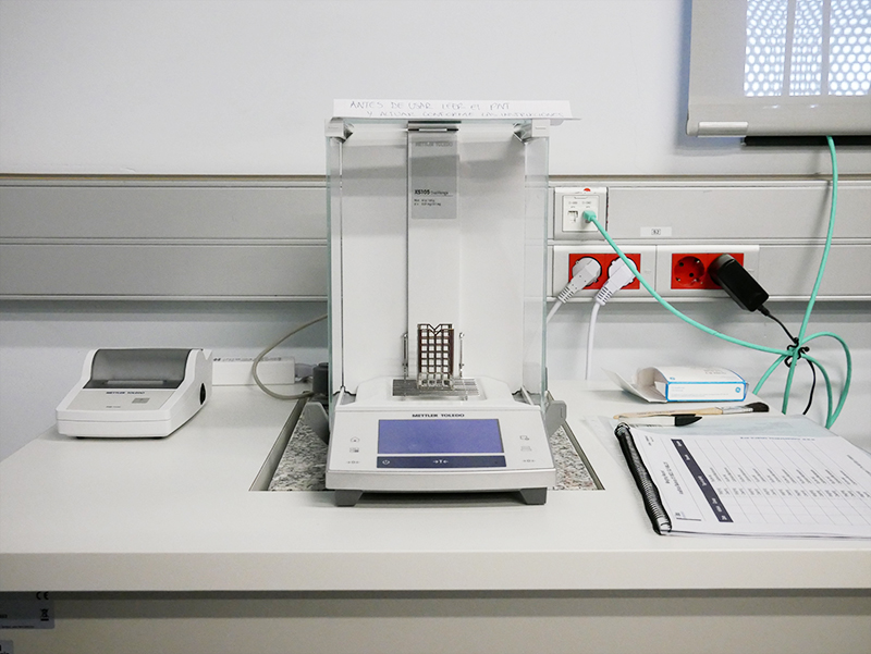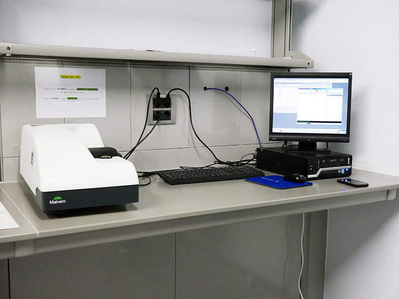 En el laboratorio se lleva a cabo la caracterización de materiales siguiendo un código de normas de Buenas Prácticas de Laboratorio. Cuenta con un Malvern Zetasizer Nano ZS para medidas de tamaño y carga superficial mediante dispersión dinámica de la luz (DLS), con un espectrofotómetro de ultravioleta-visible para microplacas (UV-VIS microplate reader Lector Biotek), una balanza analítica de precisión con registradora, pH-metro, baño de ultrasonidos, agitador de tipo vórtex y otros utensilios para preparación de muestras. También se realiza el análisis de muestras mediante difracción de rayos X de polvo (XRD), análisis termogravimétrico (TGA), microscopía electrónica y espectrometría de emisión atómica con plasma de acoplamiento inductivo (ICP-AES). En el laboratorio se realizan de forma rutinaria análisis de muestras de muy variada naturaleza y que forman parte del trabajo de químicos, físicos, biólogos, ingenieros, etc. Da servicio tanto a empresas como a investigadores del mundo académico.