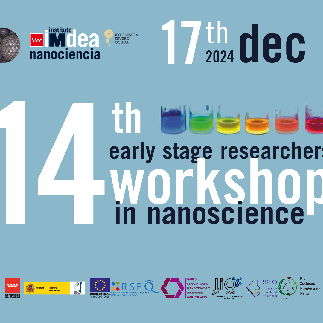 The 14th edition of the Early Stage Researchers Workshop in Nanoscience will be held on 17th December 2024 at the conference hall of IMDEA Nanociencia. The event is open to early stage researchers (PhD students and postdocs) who are invited to present their work as oral or poster communications. The poster session of this 14th Early Stage Researchers Workshop in Nanoscience will be celebrated in parallel to the oral communications. All poster communications will be displayed in the hall of IMDEA Nanociencia on the 17th of December, from 9.00 to 17.00 h. An award will be given to the Best Oral Communication, Best Poster Communication, and Best Social Media Communication, awarded during the closing remarks thanks to the sponsor of the workshop. Everyone is welcome to the event and whilst there is no cost, registration is required. Please, follow the steps on the "Registration" tab. Throughout this meeting we will see the different research lines of Nanoscience currently being developed by a growing number of groups and discuss their latest results. Due to the variety of disciplines that Nanoscience embraces, we would like to remind that the audience will be diverse including physicists, chemists or biologists and therefore we ask the presenters to adjust their contributions to this audience.