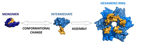 In nature there are numerous examples of biological macromolecules with allosteric control, i.e., where changes in one region of the molecule affect the behaviour and function in other regions of the molecule. However, the reproduction of this type of behaviour in synthetic molecules is very complex and so far the efforts invested in this area have only achieved a few successful results. In fact, in the specific case of the creation of new design assemblies by protein engineering, the results so far have been based on a puzzle system, where the surface of each of the rigid pieces to be assembled is modified to produce a stable interaction, without observing comformational changes. Now, researchers from IMDEA Nanociencia and the associated unit CNB-IMDEA, in collaboration with the Centro de Investigaciones Biológicas and the Universities of Granada and California have developed a model that allows to control in an allosteric way the formation and assembly of proteins through the inclusion of molecular switches formed thanks to changes in the three-dimensional structure of the protein.